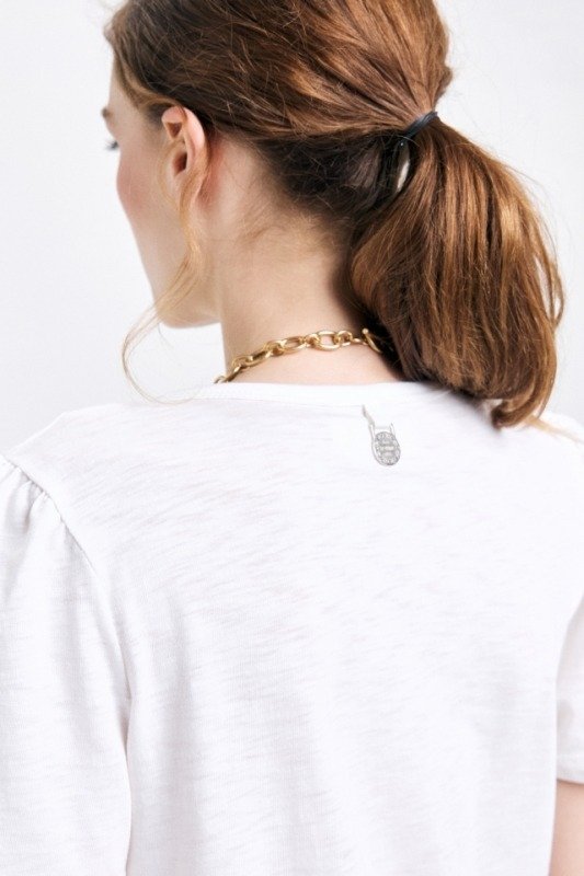Remera en jersey flamé con manga corta estilo princesa, con escote V